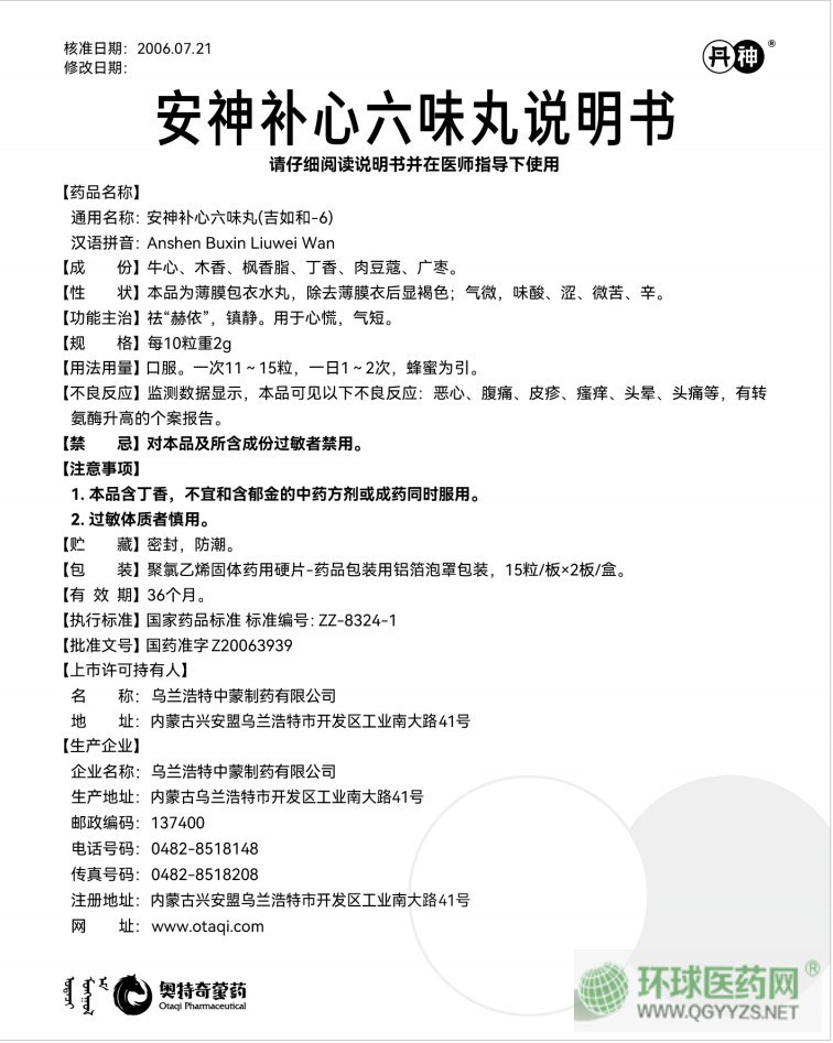 安神補心六味丸獨家產(chǎn)品