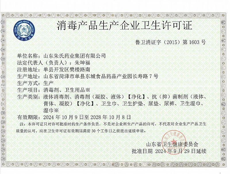 批準(zhǔn)文號(hào): 魯衛(wèi)消證字2015第1603號(hào)