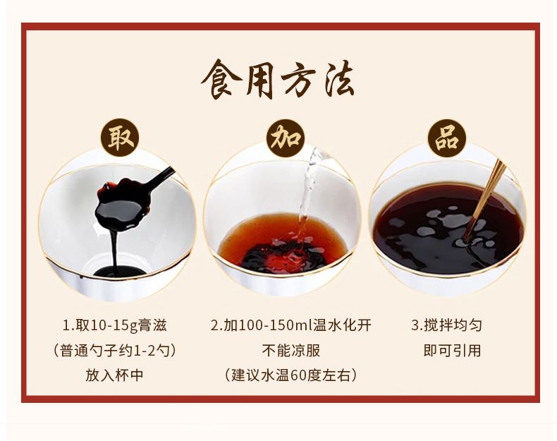 | 食用方法 | 每次一勺(約10-15g),倒入約100ml溫開水?dāng)嚢柚脸浞秩芙夂箫嬘,每?-2次 |