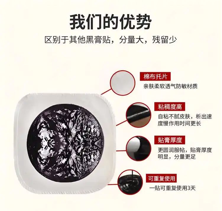 | 使用方法 | 加熱軟化后貼敷于皮膚,通過刺激穴位促進(jìn)局部血液循環(huán),實現(xiàn)成本透皮吸收與經(jīng)絡(luò)調(diào)理。 |
