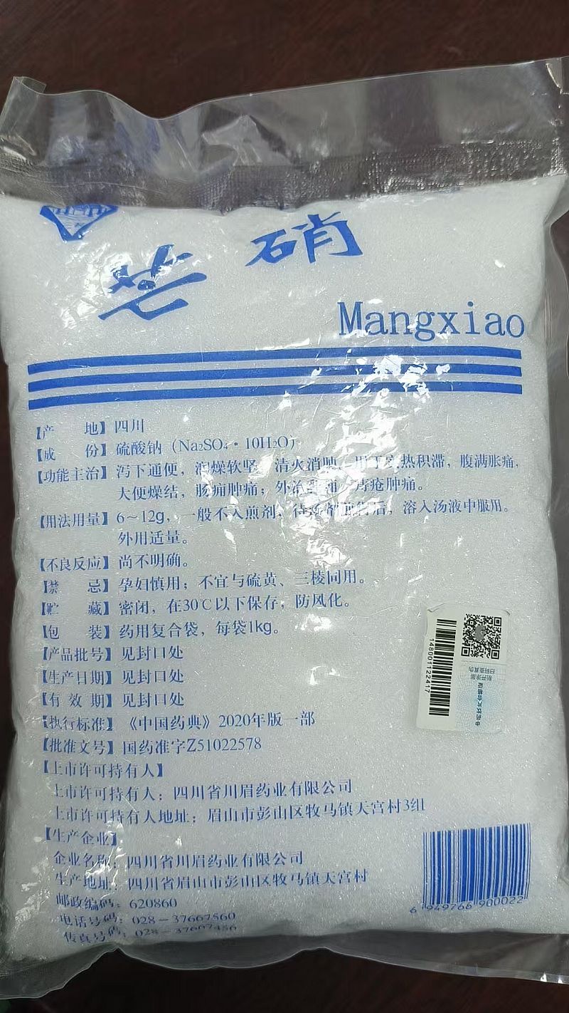 | 補充說明 | 本品為硫酸鹽類礦物芒硝族芒硝,經(jīng)加工精制而成的結(jié)晶體,主含含水硫酸鈉(Na2SO4·10H2o)。 【性味與歸經(jīng)】咸、苦,寒。歸胃、大腸經(jīng)。 【注意】孕婦慎用;不宜與硫黃、三棱同用。 【貯藏】密閉,在30℃以下保存,防風(fēng)化。 |