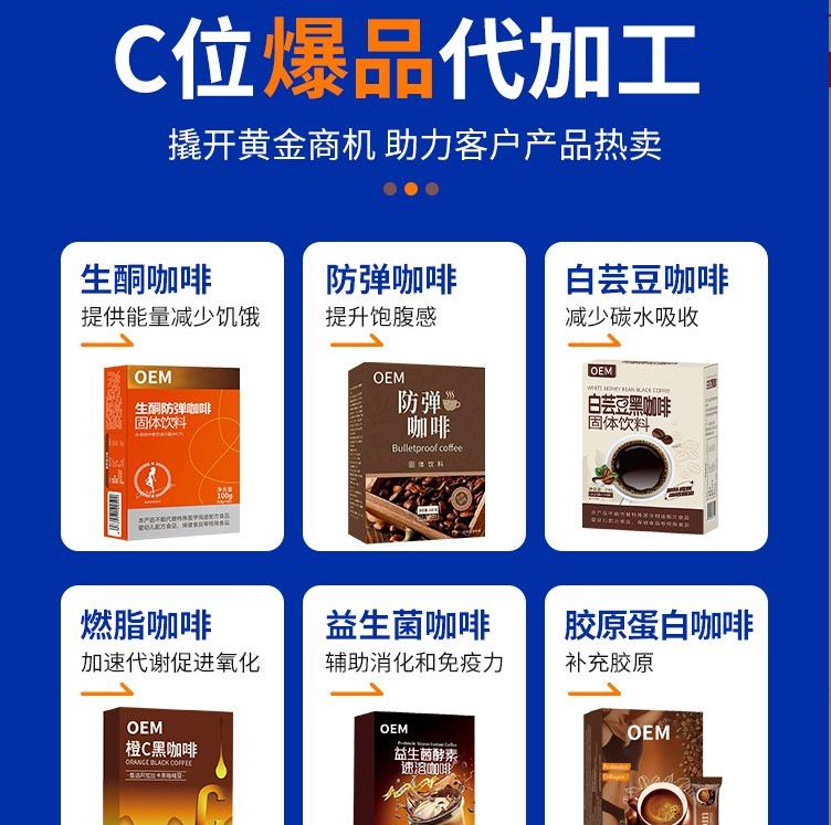 產(chǎn)品名稱: 防彈咖啡代加工廠家奶咖等可提供配方貼牌定制起訂量低
