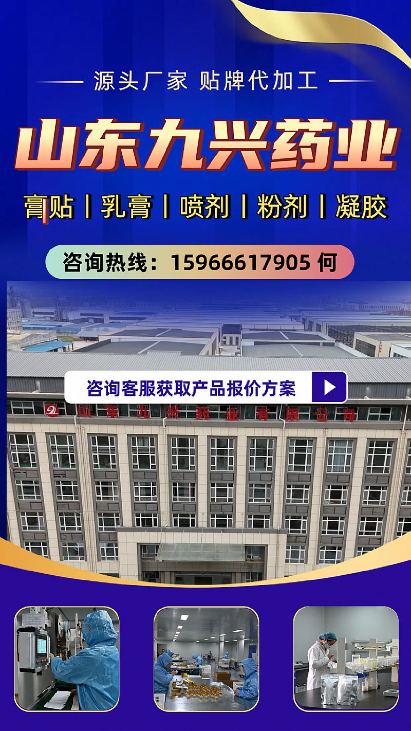 | 補充說明 | 山東九興藥業(yè)主營膏藥貼牌代加工,老黑膏藥貼牌代加工,理療貼代加工,治療貼代加工,穴位貼代加工,小兒穴位貼代加工,穴位貼敷治療貼代加工,遠紅外理療貼代加工,磁療貼代加工,熱療貼代加工,三伏貼代加工,暖宮貼代加工,遠紅外貼代加工,空白裸貼代加工,小兒穴位貼代加工,凝膠代加工,熱療貼代加工,黑膏藥貼代加工,發(fā)熱包代加工,鼻炎噴霧劑代加工,鼻炎貼代加工,凝膠乳膏代加工,活絡油代加工,前列腺貼代加工,灸熱貼代加工,磁熱療貼代加工,隔物灸代加工,燙熨治療貼代加工,熱奄包代加工,磁灸熱貼代加工,灸熱治療貼代加工,自熱貼代加工,按摩精油代加工,精油代加工,膏藥oem貼牌定制代加工,歡迎有需要膏藥貼牌代加工的朋友來電15966617905咨詢洽談合作。 |