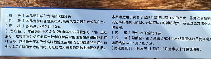 | 主要成分 | 本品主要成份為瑞舒伐他汀鈣 |