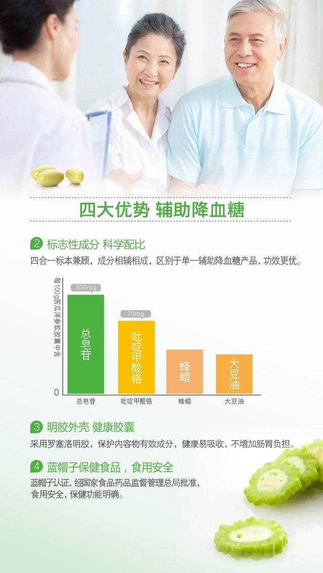 | 主要成分 | 苦瓜提取物(經(jīng)輻照)、西洋參提取物(經(jīng)輻照)、啶甲酸鉻 |