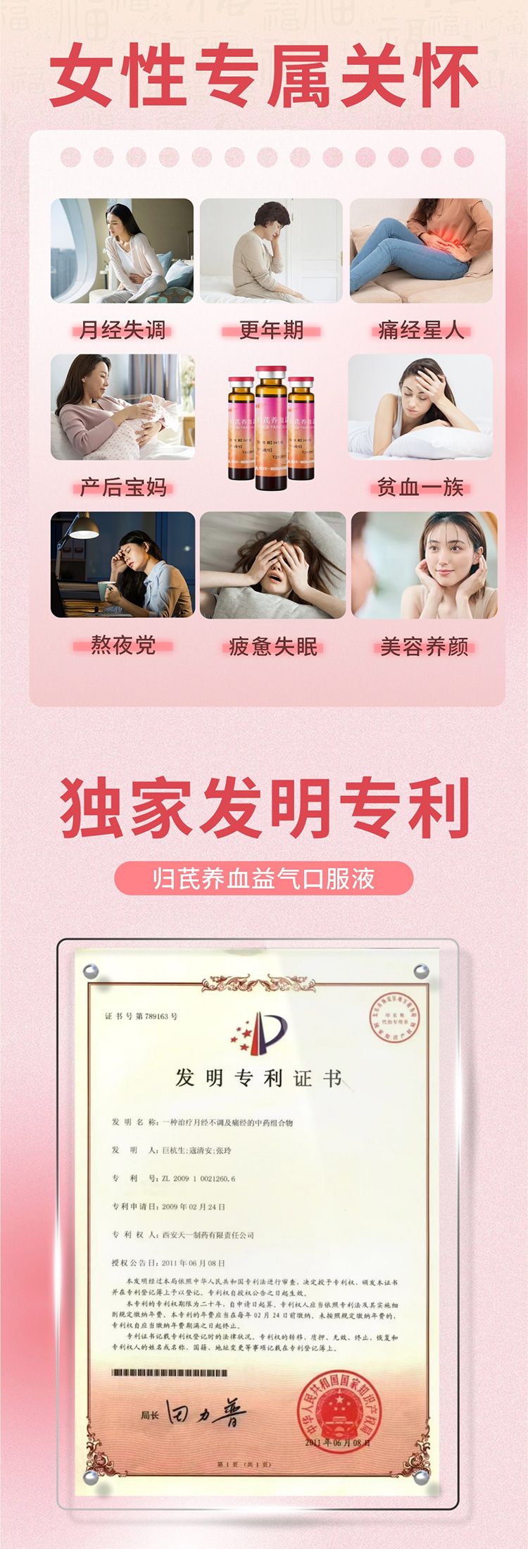 產品用途 益氣養(yǎng)血,調補肝腎。用于氣血虛弱,肝腎不足所致的月經量多,經期延長,經行小腹隱痛等癥。