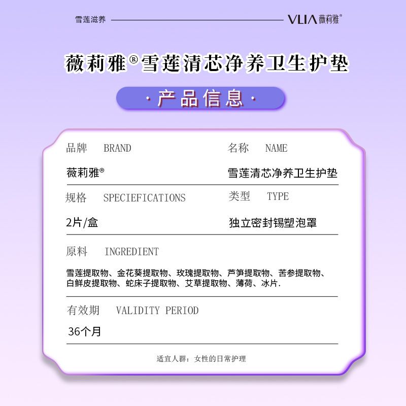 | 產(chǎn)品名稱 | 雪蓮清芯凈養(yǎng)衛(wèi)生護墊 |
