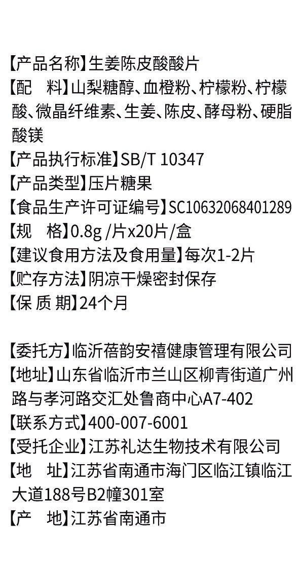 | 產(chǎn)品名稱 | 生姜陳皮酸酸片 |
