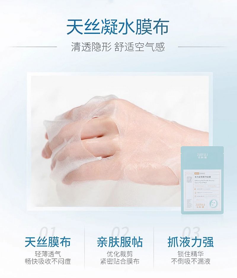 | 產(chǎn)品名稱 | 佐膚理美白祛斑精華面膜 |