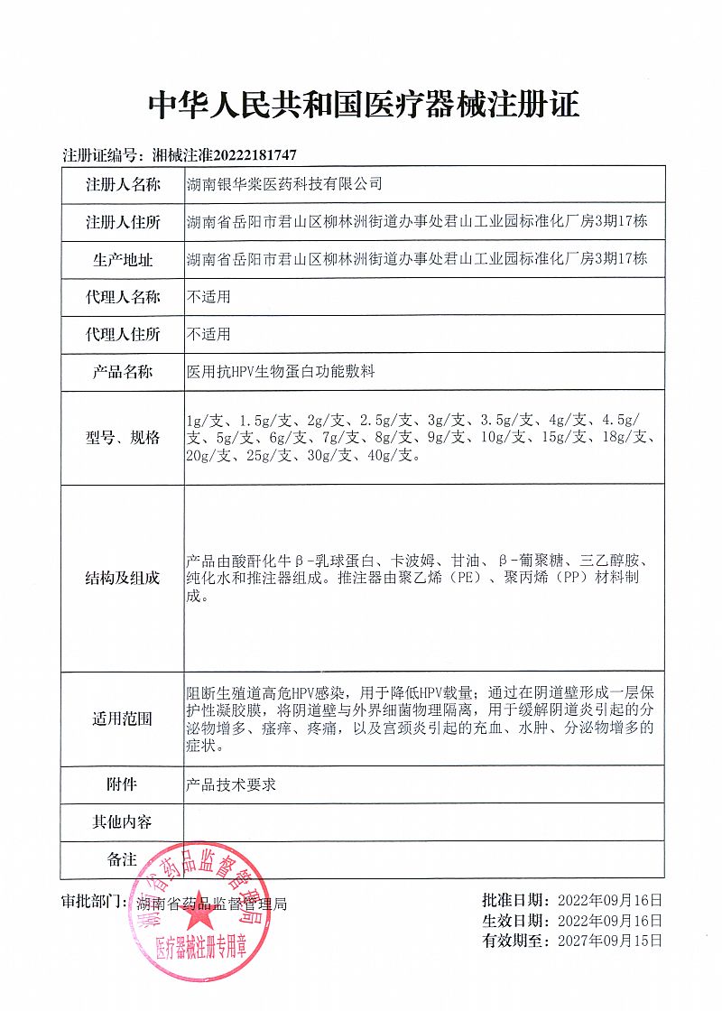 | 產(chǎn)品名稱 | 醫(yī)用抗HPV生物蛋白功能敷料 |