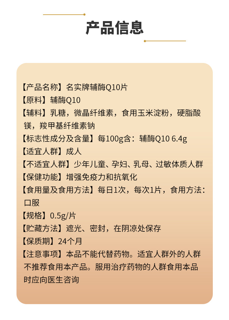 | 產(chǎn)品名稱 | 名實牌輔酶Q10片 |