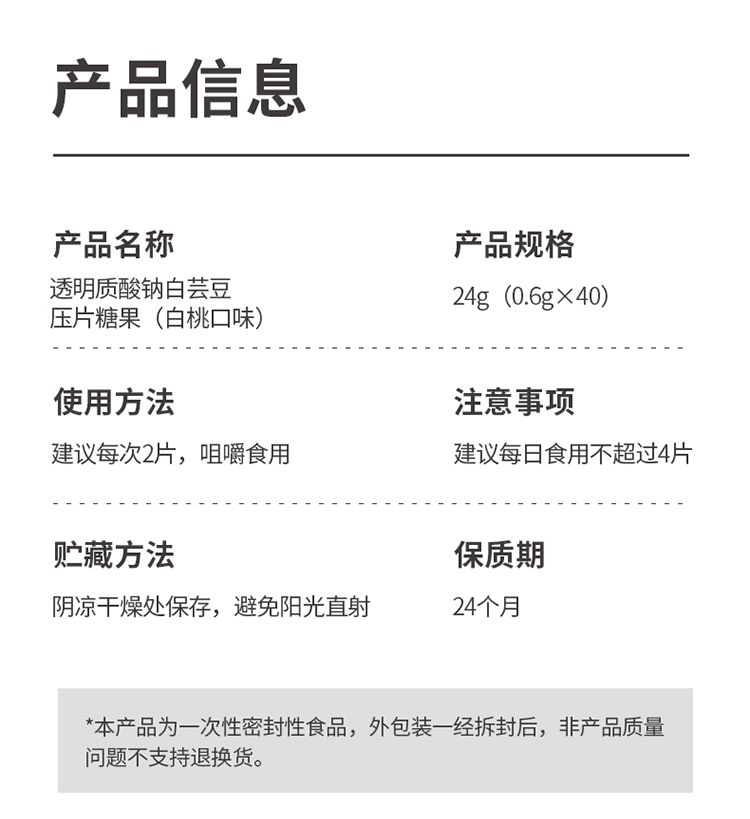 產(chǎn)品名稱: 透明質(zhì)酸鈉白蕓豆壓片糖果
