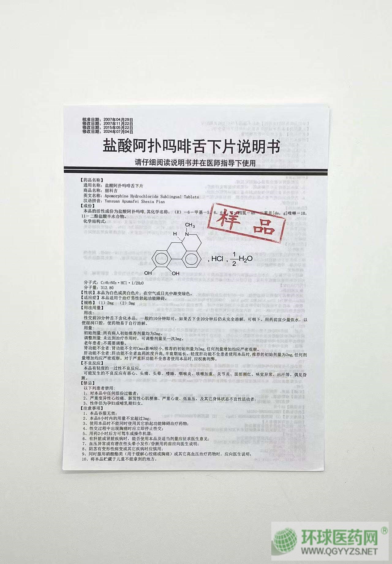 | 通用名稱 | 鹽酸阿撲嗎啡舌下片 |