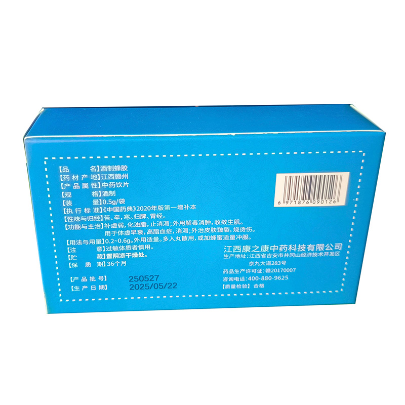 | 產(chǎn)品名稱(chēng) | 酒制蜂膠0.5克/袋 |