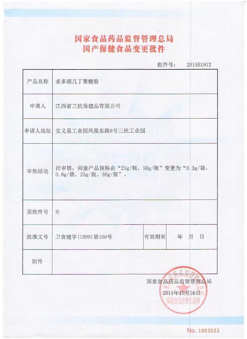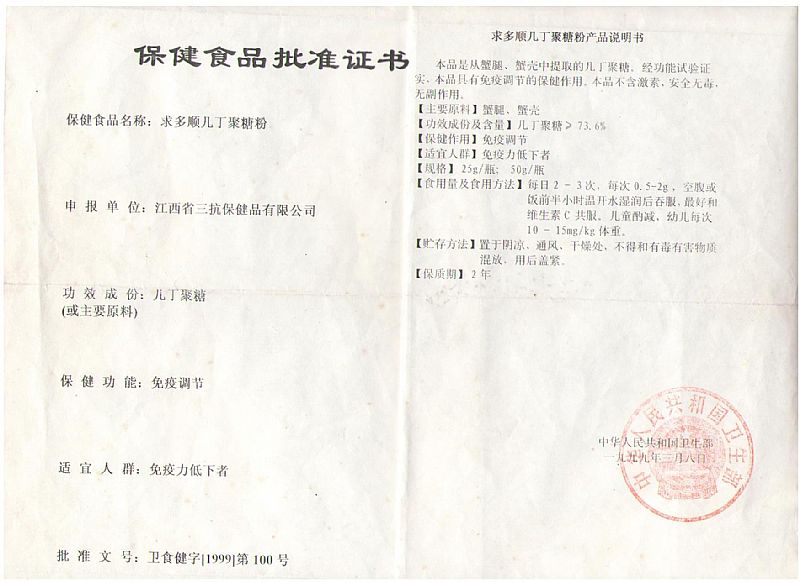 批準(zhǔn)文號(hào): 衛(wèi)食健字1999第100號(hào) 【驗(yàn)證真?zhèn)?/a>】