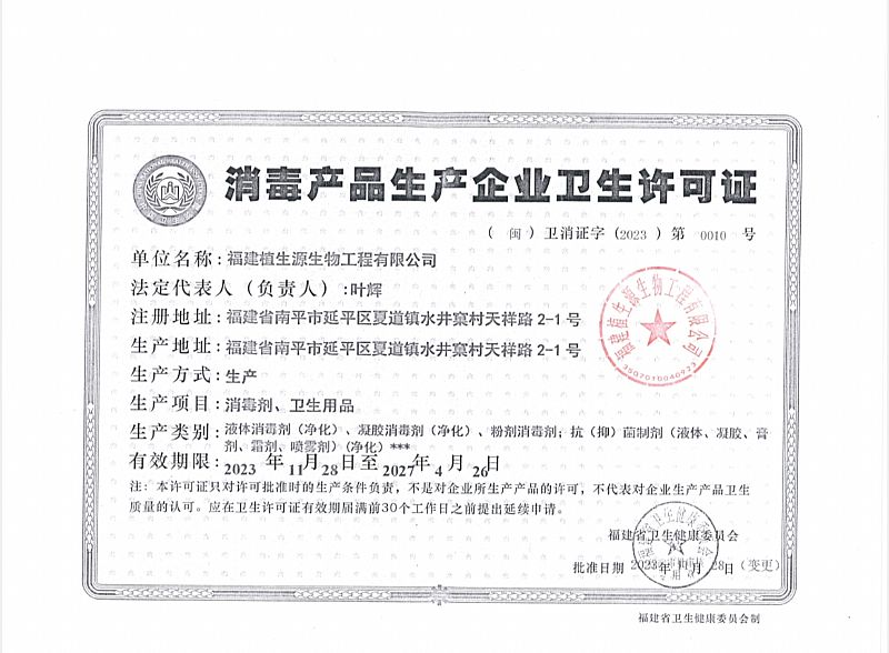 批準(zhǔn)文號: 閩衛(wèi)消證字2023第0010號