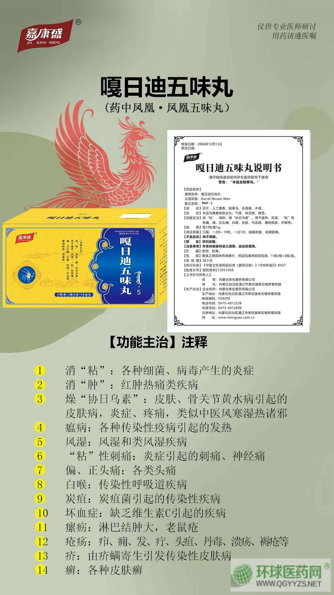 | 產(chǎn)品賣點(diǎn) | [紅包][紅包][紅包]嘎日迪五味丸藥中鳳凰 五大功效:[玫瑰][玫瑰][玫瑰][玫瑰][玫瑰] (1)?皮膚病用藥:**皮炎、濕疹、蕁麻疹、疥癬牛皮癬黃水瘡、帶狀皰疹、生殖器皰疹等。 (2)?祛風(fēng)除濕,骨關(guān)節(jié)病基礎(chǔ)用藥:風(fēng)濕、類風(fēng)濕關(guān)節(jié)炎、關(guān)節(jié)疼痛、痛風(fēng)、腰腿疼痛頸椎病、肩周炎。 (3)?瘰疬結(jié)節(jié):淋巴結(jié)節(jié),乳腺結(jié)節(jié),肺結(jié)節(jié),痔瘡硬塊等。 (4)?治療急性上焦炎癥、流行性疾病:可見紅、 |