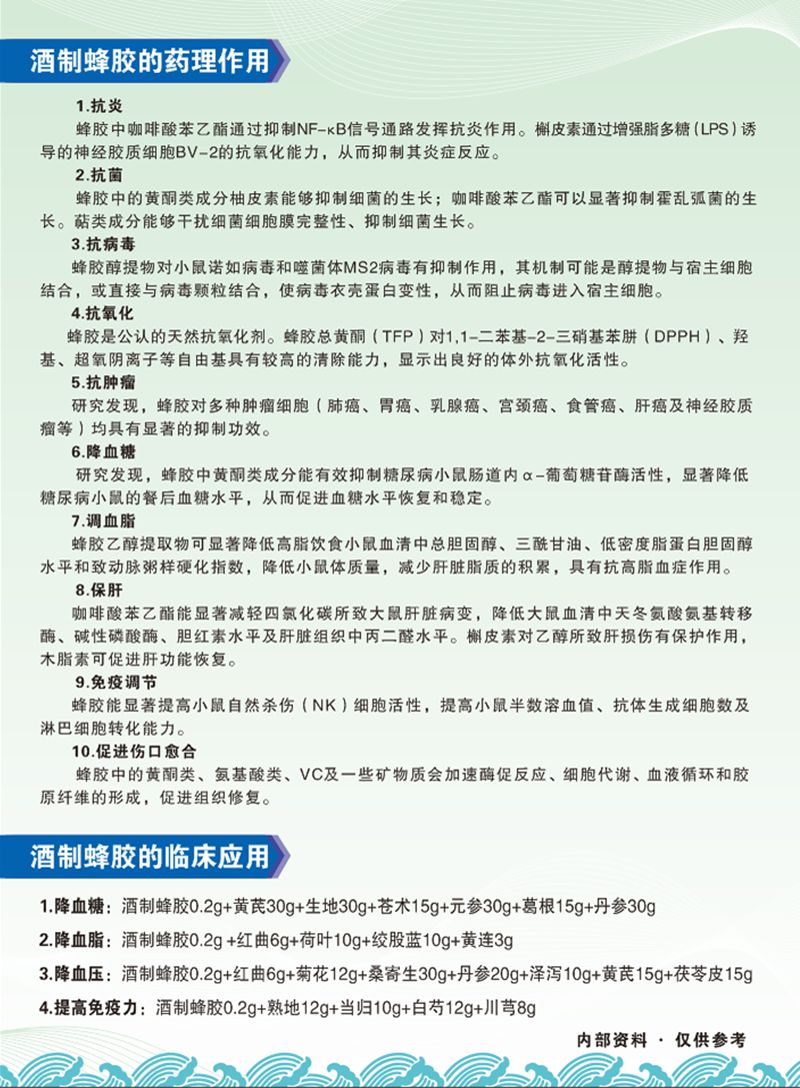 6、治療動(dòng)脈粥樣硬化(痰濁血瘀證):核心癥狀為頭暈、肢體麻木、胸悶,適配酒制蜂膠化濁脂、抗炎抗氧化功效;