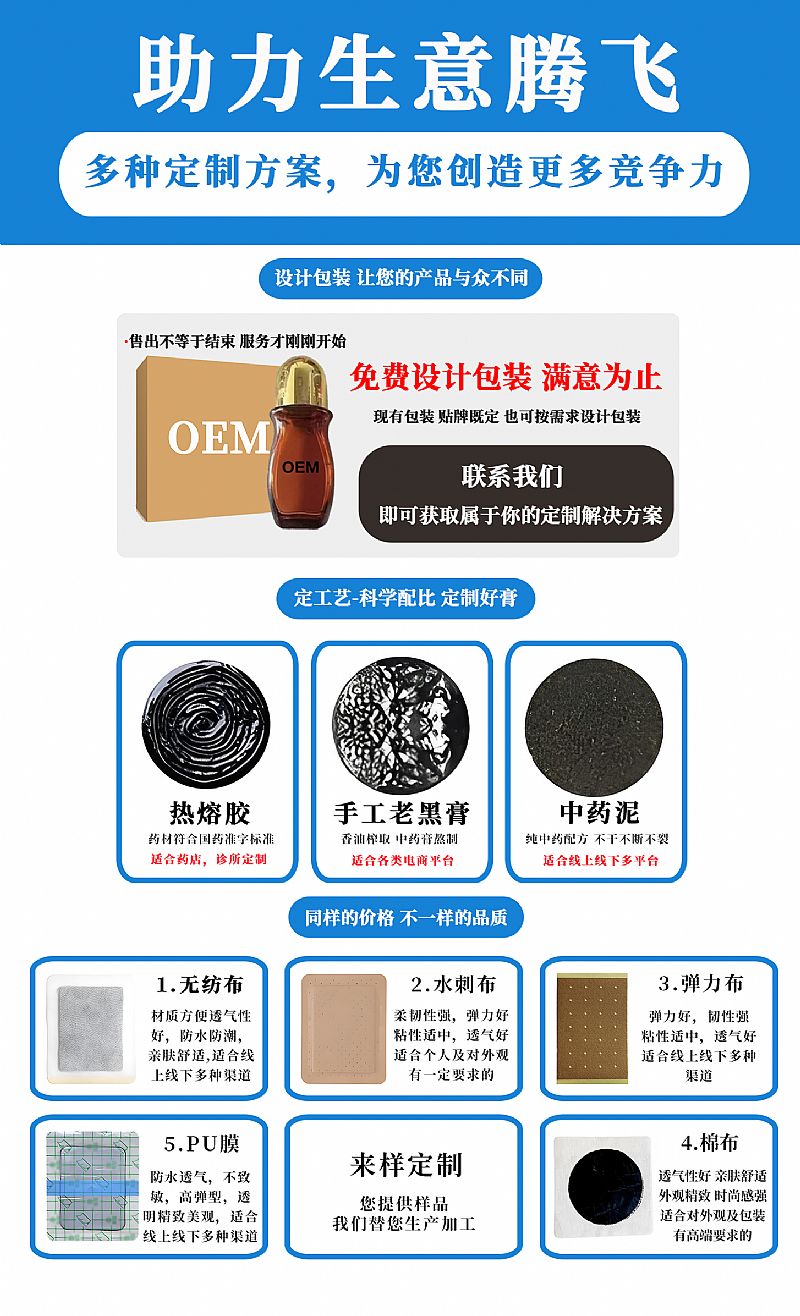 | 補(bǔ)充說明 | 主營膏藥貼牌代加工,老黑膏藥貼牌代加工,理療貼代加工,治療貼代加工,穴位貼代加工,小兒穴位貼代加工,穴位貼敷治療貼代加工,遠(yuǎn)紅外理療貼代加工,磁療貼代加工,熱療貼代加工,三伏貼代加工,暖宮貼代加工,遠(yuǎn)紅外貼代加工,空白裸貼代加工,凝膠代加工,黑膏藥貼代加工,發(fā)熱包代加工,鼻炎噴霧劑代加工,鼻炎貼代加工,凝膠乳膏代加工,活絡(luò)油代加工,前列腺貼代加工,灸熱貼代加工,磁熱療貼代加工,隔物灸代加工,燙熨治療貼代加工,熱奄包代加工,磁灸熱貼代加工,灸熱治療貼代加工,自熱貼代加工,按摩精油代加工,精油代加工,膏藥oem貼牌定制代加工,歡迎有需要膏藥貼牌代加工的朋友來電13027787717咨詢洽談合作。 |