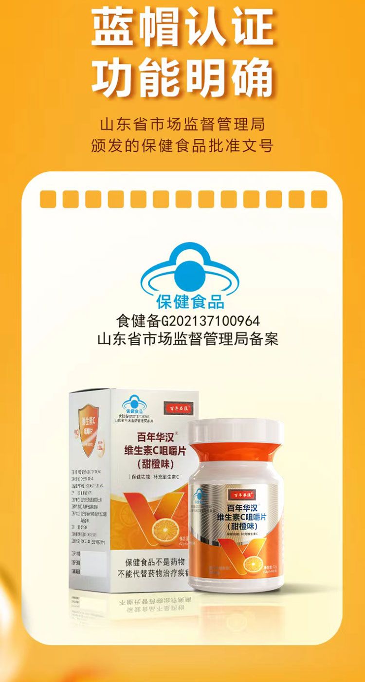 百年華漢維生素C咀嚼片甜橙味藍(lán)帽產(chǎn)品批發(fā)代理