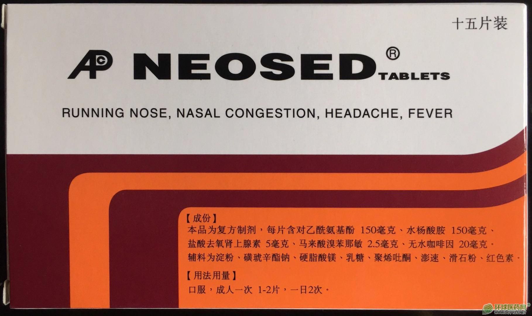 | 主要成分 | 每片含對乙酰氨基酚150毫克、水楊酰胺150毫克、鹽酸去氧腎上腺素5毫克、馬來酸溴苯那敏2.5毫克、無水咖啡因20毫克。 |